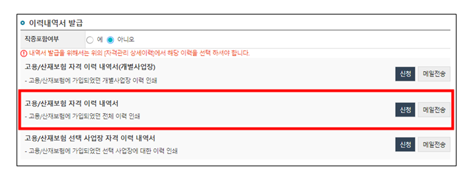 2. 고용 산재보험 자격 이력 내역서를 클릭합니다.