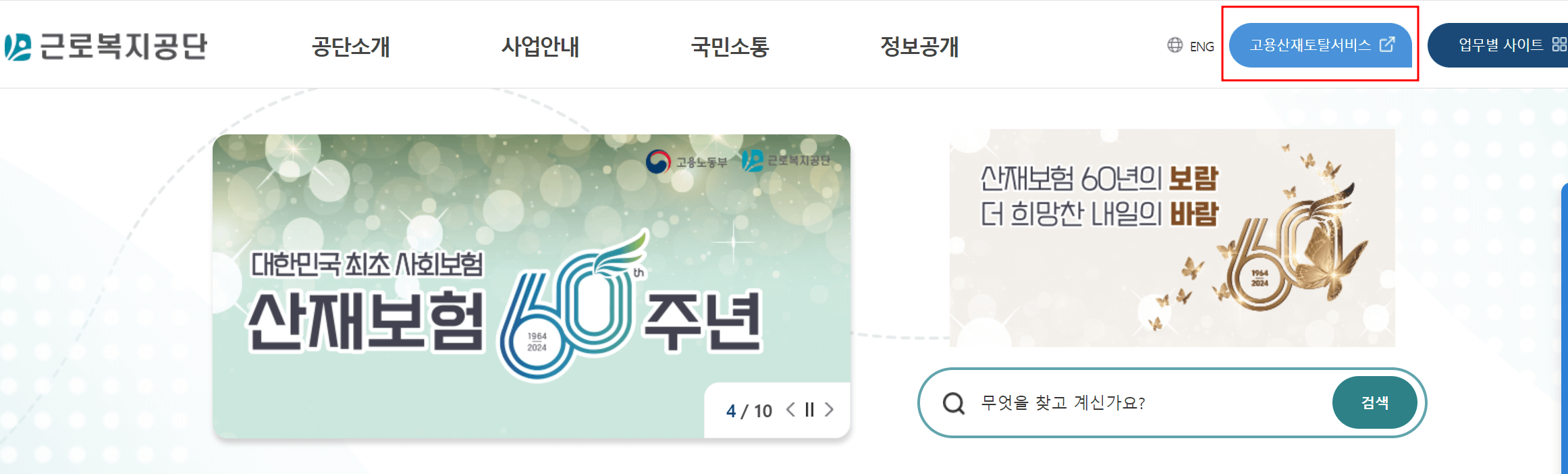 1. 근로복지공단홈페이지의 고용산재 토탈서비스를 클릭합니다.