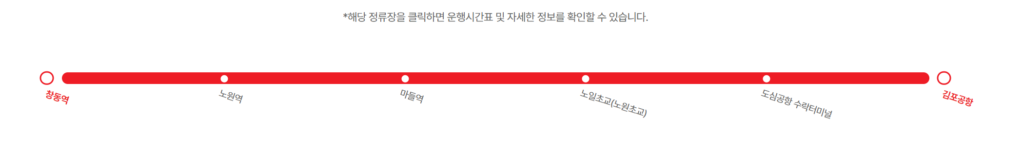 창동역, 노원약, 마들역, 노일초교(노원초교), 도심공항 수락터미널, 김포공항